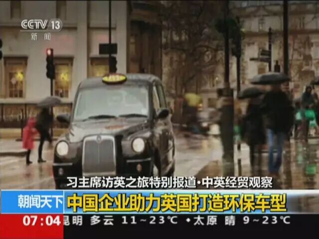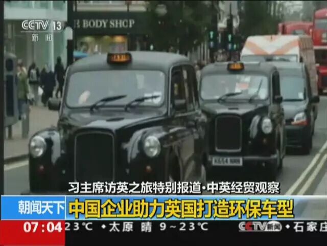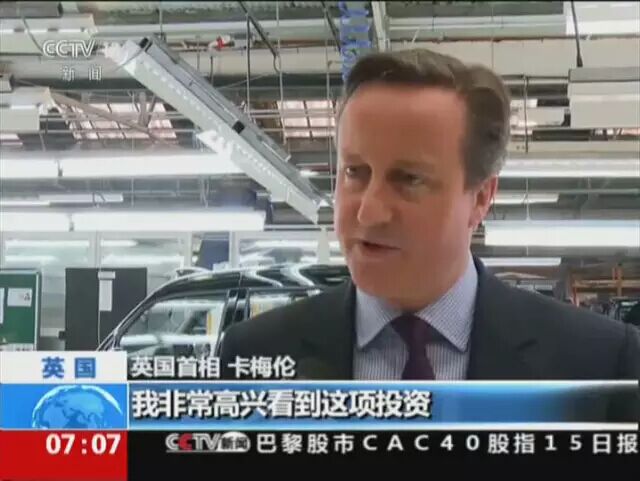 英国首相 卡梅伦说:“我非常高兴看到这项投资,这项2.5亿英镑(约合24.5亿元人民币)的投资能创造出一千个出租车制造岗位,并增加五百个产业链上的岗位。英国欢迎中国投资,因为这不仅使中国获益,也使英国获益,它创造就业、提高民生。我相信不久以后,这些出租车将出口到全世界。”